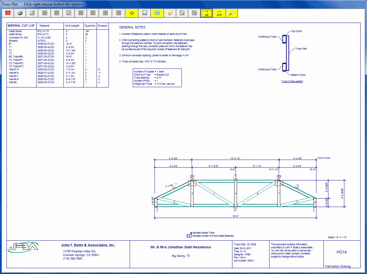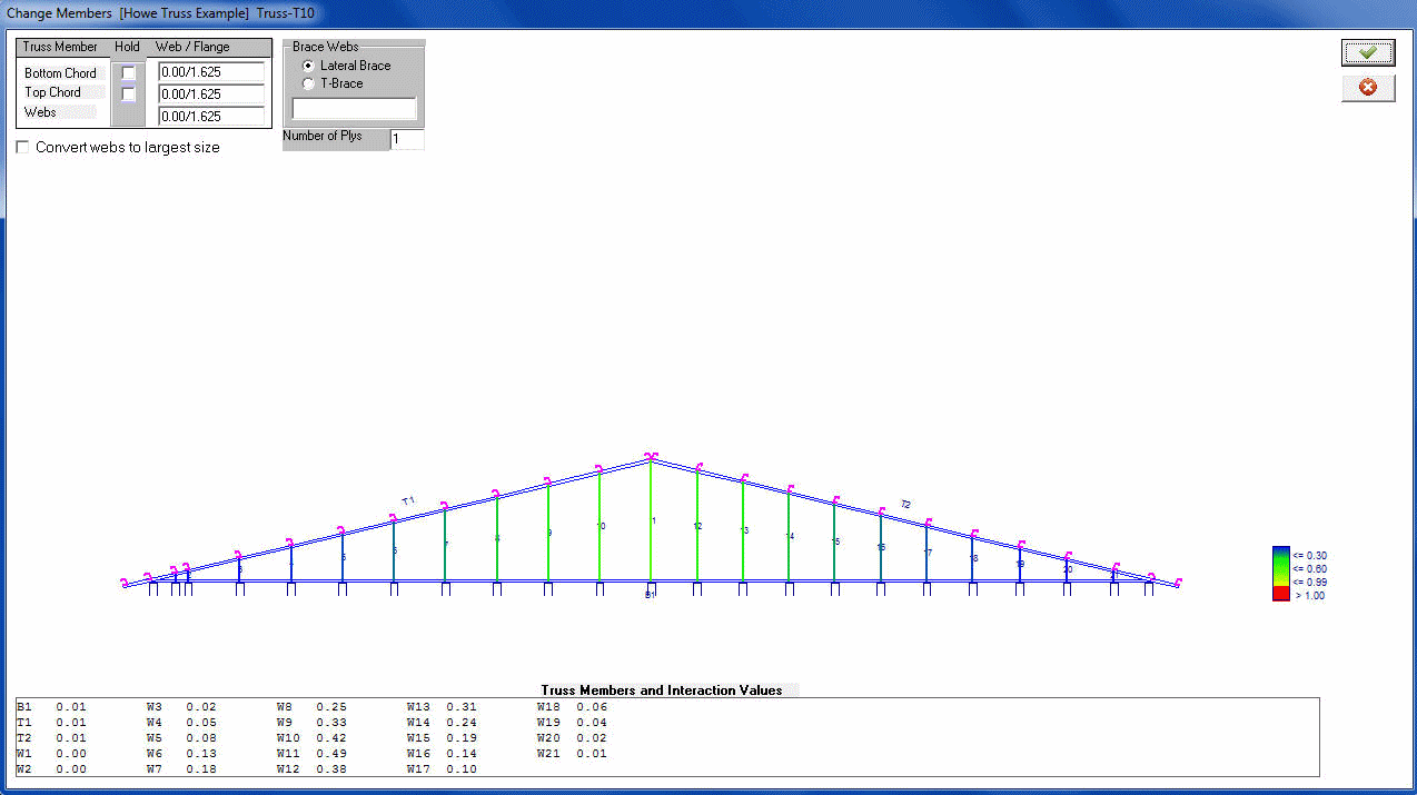 User Friendly Graphical Interface allows you to: add, delete, or move webs, add or delete supports, use different support types, add or delete points, and add your own notes to the truss plots and layout sheets.