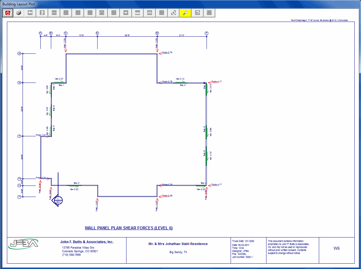 - Plan layout of shear forces on walls, per level