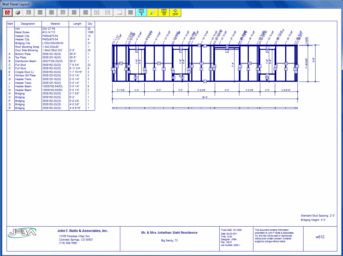 - Designs Studs + Connections, Bottom and top plates, Headers + Connections, and Bridging: Straps +Blocking Connection